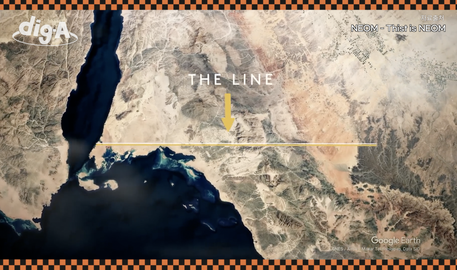 그런데 여기, SF 영화 보다 더 영화 같은 계획을 현실로 만들겠다고 선언한 프로젝트가 있습니다. 사우디아라비아가 사막 한복판에 세우겠다는 미래도시, 네옴(NEOM)입니다. 네옴 프로젝트는 170km 길이의 직선 도시 ‘더 라인(The Line)’을 비롯해 산업·관광·스포츠 특구를 건설하는 세계 최대 규모의 건설 프로젝트로, 언론에서는 ‘인류 역사상 가장 큰 건설 현장’이라고 부르고 있습니다.